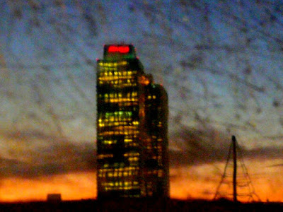 Todas las fotos son reflejos sobre metal de la Torre Mafre de Barcelona y alrededores y están hechas en el mismo lugar al atardecer en diferentes días